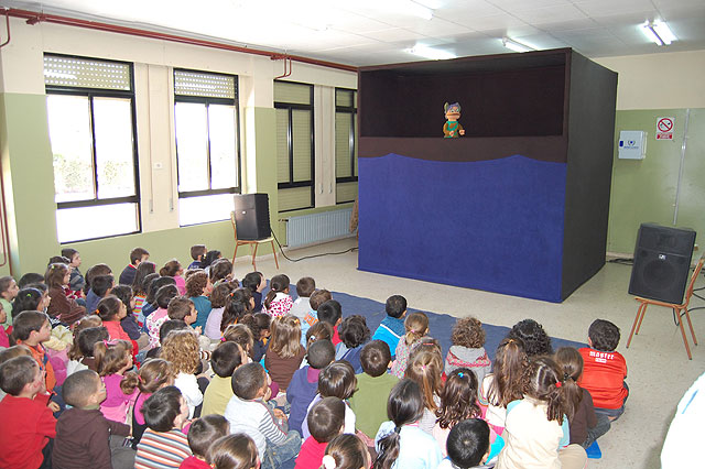 Las pantomimas de los muñecos en el teatro de títeres fascinaron a los alumnos del colegio público “Valentín Buendía” de Las Torres de Cotillas. Estos jóvenes espectadores de Educación Primaria hicieron un alto en sus clases para disfrutar el pasado viernes 13 de febrero –con motivo de la celebración de San Valentín, patrón homónimo del nombre del colegio- de la obra “El niño que quería ser Harry Potter”, un espectáculo teatral que tuvo lugar en el propio centro docente torreño y que corrió a cargo de “Marimba Marionetas”.