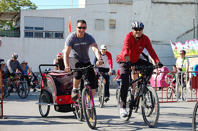 Este programa, encuadrado en la “Estrategia para la Nutrición, Actividad Física y Prevención de la Obesidad (NAOS)”, ha celebrado ya algunas de sus actividades, como la ruta ciclista que en la mañana de hoy domingo 26 de abril se ha realizado. Con el título de “Domingo Saludable”, esta actividad para todas las edades ha partido desde la Explanada Maestro Ángel Palazón y ha recorridola mota del río Segura, una actividad que pretendía dar a conocer itinerarios por donde se pueden realizar pequeñas rutas en familia por nuestra huerta.