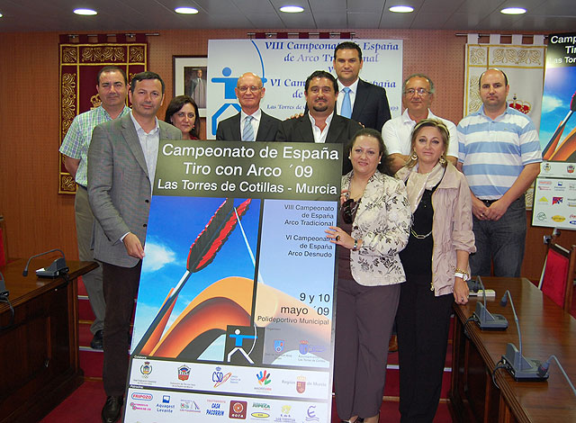 En la mañana de hoy lunes 4 de mayo el alcalde de Las Torres de Cotillas, Domingo Coronado, el director general de Deportes del Gobierno Regional, Antonio Peñalver, y el concejal de Deportes torreño, Juan Carlos Martínez, han presentado de manera oficial el “VIII Campeonato de España de Tiro con arco tradicional” y del “VI Campeonato de España de Tiro de arco desnudo”. Estos campeonatos nacionales, que reunirán en el Campo Municipal de césped artificial del municipio torreño a más de 110 arqueros de toda la geografía española (entre ellos 15 murcianos), se celebrarán los próximos sábado 9 y domingo 10 de mayo y el público asistente contará con entrada gratuita.