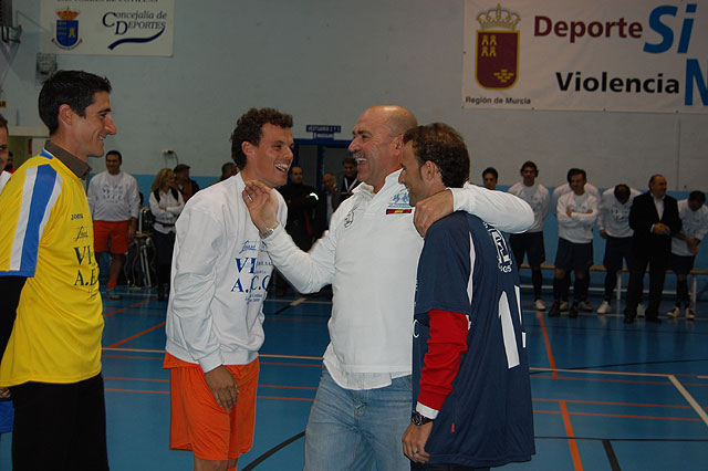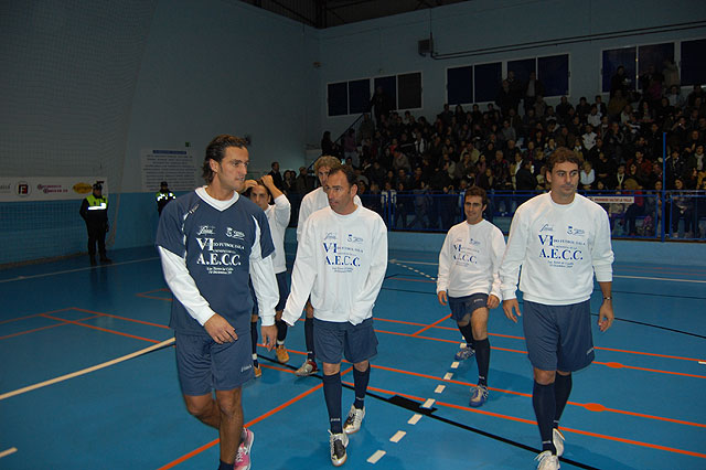 La sexta edición del “Partido de fútbol sala a beneficio de la Asociación Española Contra el Cáncer (AECC)”, organizado por la Concejalía de Deportes de Las Torres de Cotillas, se celebró ayer viernes 18 de diciembre en el Polideportivo Municipal torreño con un cartel de auténtico lujo. Con el popular cantante David Bustamante a la cabeza –que, como sus compañeros de partido firmó autógrafos a diestro y siniestros siempre con una sonrisa en la boca-, este encuentro solidario contó con la participación del ciclista lumbrerense Alejandro Valverde, del ex futbolista y actual comentarista en “La Sexta” Kiko Narváez, y del torero ceheginero Pepín Líria.