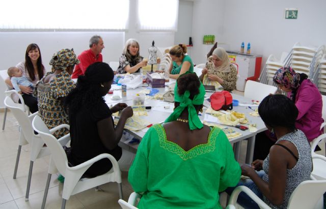 El pasado martes 3 de mayo se inició en el Centro Social del barrio del Carmen de Las Torres de Cotillas un taller de costura para personas en riesgo de exclusión social, enmarcado en el convenio de colaboración firmado entre el Ayuntamiento torreño y el "Proyecto Abraham". Esta propuesta, que cuenta con matrícula gratuita, se desarrollará durante todo el mes de mayo de lunes a viernes en horario matutino (de 9'30 a 13'30 horas) y en ella participan un total de 13 mujeres (siete marroquíes, tres senegalesas, una argelina, una malí y una española).