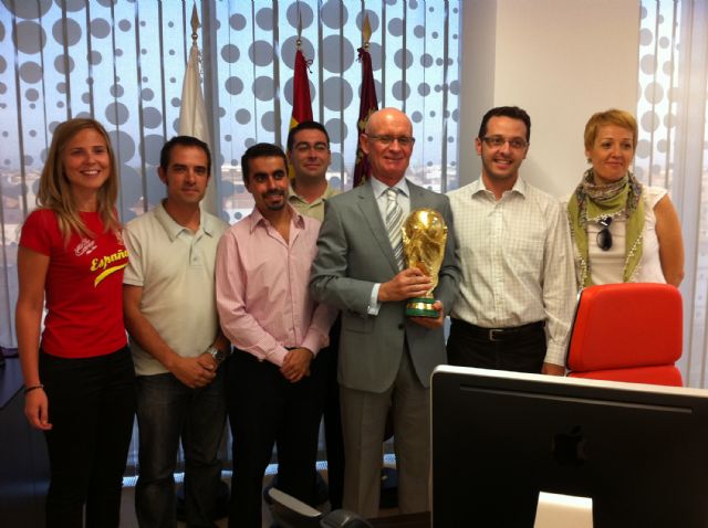 La Copa del Mundo obtenida en Sudáfrica 2010 por la Selección Española ya está en Las Torres de Cotillas haciendo las delicias de sus vecinos y visitantes. Y es que desde primera hora de la mañana de hoy viernes 7 de octubre este preciado trofeo que coronó a los hombres de Del Bosque como campeones del mundo de fútbol en el pasado Mundial se expone en el Ayuntamiento torreño, al que cientos de aficionados al deporte rey están acercándose para fotografiarse con la dorada copa. "La respuesta ciudadana está siendo fenomenal, ya que es una oportunidad extraordinaria que todos los torreños tienen de contemplar de cerca y fotografiarse con uno de los trofeos más importantes obtenidos por los deportistas de nuestro país", señala el concejal de Deportes torreño, Ginés Pérez Iniesta.