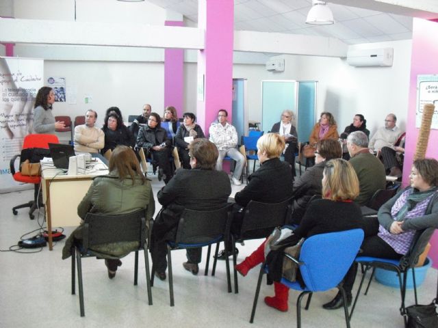 El Centro de la Mujer de Las Torres de Cotillas acogió ayer martes 21 de febrero una charla con entrada gratuita que, con el titulo de "Cuídate para cuidar", se dirigía a los cuidadores de personas dependientes beneficiarias del servicio de "Teleasistencia Domiciliaria". El objetivo de esta propuesta –a la que asistió la concejala de Igualdad torreña, Gloria Fernández- era el de informar y formar a los cuidadores de personas dependientes sobre autoestima, técnicas de relajación y habilidades necesarias para afrontar sus tareas de cuidador.