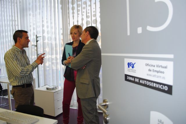 El director general del Servicio Regional de Empleo (SEF) del Gobierno regional, Ginés Martínez, y la concejala torreña de Empleo, Gloria Fernández, han inaugurado oficialmente en la mañana de hoy jueves 9 de mayo la Oficina Virtual de Empleo de Las Torres de Cotillas, situada en la primera planta del Consistorio local junto al despacho del Agente de Desarrollo Local. "Los usuarios podrán realizar diversas gestiones telemáticas como la renovación de demandas de empleo, altas o bajas en el paro, consulta de ofertas de trabajo o de cursos de formación, etc.", explica Martínez, que apunta que también "se podrá solicitar la prestación por desempleo, subsidios, PRODI, etc.".