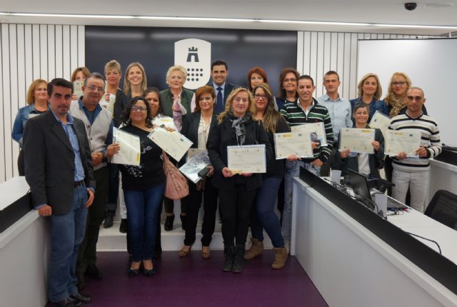 Los 15 participantes del "Taller Mixto de Empleo y Formación de Limpieza" de Las Torres de Cotillas recibieron el pasado jueves 6 de noviembre sus diplomas en el acto de clausura oficial de esta propuesta, que estuvo presidido en el Salón de Plenos del Ayuntamiento local por el alcalde torreño, Domingo Coronado, el director del Servicio de Empleo y Formación (SEF), Alejandro Zamora, y la concejal local de Empleo, Isabel Franco.