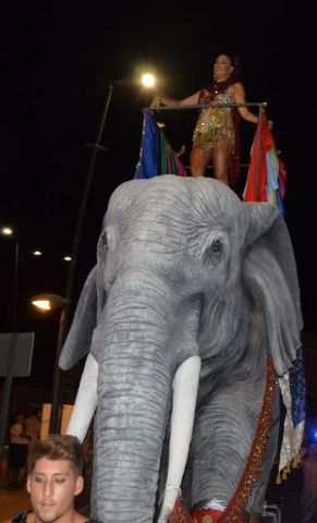 El desfile de carrozas y comparsas de las Fiestas Patronales 2016 se celebró en la noche de ayer sábado 27 de agosto, con un recorrido entre la avenida Juan Carlos y la calle Antón Tobalo que estuvo atestado de espectadores como es tradición.