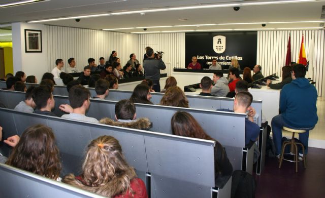 Un grupo de 34 estudiantes de Bachillerato del "Lycée Albert Camus" de la localidad francesa de Firminy están de visita estos días en Las Torres de Cotillas con motivo de la octava edición del programa de intercambio escolar que desarrolla su centro con el IES "Salvador Sandoval". Los alumnos galos, que se hospedan en casa de sus "hermanos" torreños" y vienen acompañados de cuatros profesores, llegaron el pasado jueves y desde entonces han hecho diversas visitas turísticas, como a Totana, Cartagena, Murcia o la localidad alicantina de Orihuela. "También han conocido nuestro municipio y han visitado empresas locales, como 'Linasa', y antes de Semana Santa recibirán la visita de nuestros estudiantes", explica el concejal de Educación, Pedro Cabrera, que les ha dispensado una recepción oficial en el Consistorio torreño en el que los jóvenes -franceses y españoles- han sido obsequiados con obras de la autora Carmen Montero Medina.