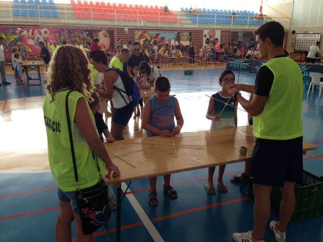Padres, hijos y abuelos entreteniéndose juntos con un pasatiempo de lo más tradicional. Ése fue el espíritu de la cuarta edición de la jornada 'Construye y vuela tu cometa' que se celebró en Las Torres de Cotillas, esta vez en el marco del proyecto europeo 'Do-U-Sport'. Dividido en dos, este taller primero contó por la mañana en el pabellón municipal 'Mireia Belmonte' con la parte en la que sus participantes aprendieron a confeccionar su propio artefacto volador. "Hubo una gran concurrencia y contamos con la colaboración de varios voluntarios", explica el concejal de Actividad Física y Deportes, Ginés Pérez.