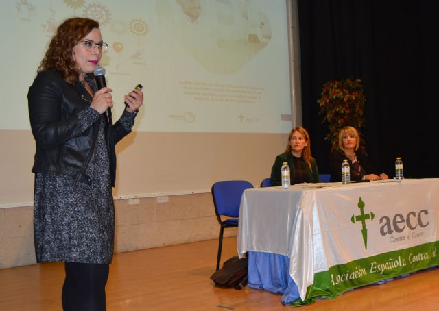 La Casa de la Cultura 'Pedro Serna' de Las Torres de Cotillas acogió en la tarde de ayer jueves 21 de noviembre una charla gratuita organizada por la junta local de la Asociación Española Contra el Cáncer (AECC) en colaboración con el Ayuntamiento. Esta actividad, impartida por el equipo psico-social de la AECC Murcia, tenía como como objetivo mostrar los programas y servicios de esta asociación.