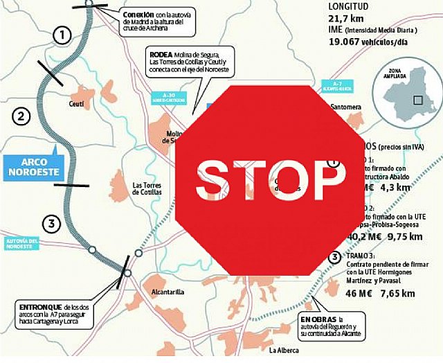 Para solventar esta situación el Gobierno de Mariano Rajoy diseñó nuevas y prioritarias infraestructuras: el Arco Norte, el Arco Noroeste (con una inversión de 139 millones de euros y un plazo de ejecución de 32 meses) y el tercer carril de la A-7 hasta la localidad de Puerto Lumbreras.
