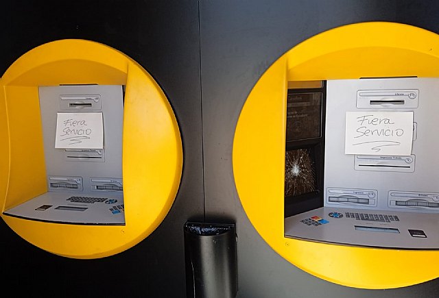 Y es que, en un despliegue que cabe pensar de vandalismo organizado, desde hace una semana están amaneciendo rotas a pedradas, reventadas, las pantallas acristaladas de varios cajeros automáticos, que de esta forma quedan prácticamente inutilizados, fuera de uso y servicio y con boquetes de gran tamaño.