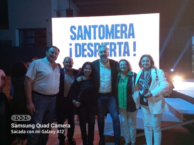 "Santomera, despierta". Con este anhelo y eslogan en un abarrotado Auditorio Municipal "Ginés Abellán" Víctor Manuel Martínez recibía en la noche de este jueves el respaldo y la ovación de sus paisanos, amigos, afiliados, cargos públicos y locales del PP regional en el acto de su proclamación oficial como candidato popular a la Alcaldía de Santomera en las próximas elecciones locales del 28 de mayo de 2023.