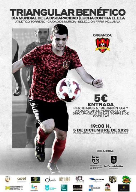 Mañana martes 5 de diciembre (19:00 horas), con motivo del día mundial de la discapacidad, se celebra en el pabellón municipal de Las Torres de Cotillas un torneo benéfico de fútbol sala en favor de la lucha contra la esclerosis lateral amiotrófica(ELA). Este evento estará organizado por el Atlético Torreño, en colaboración con la Federación de Fútbol de la Región de Murcia (FFRM) y las Concejalías de Discapacidad y de Deportes.