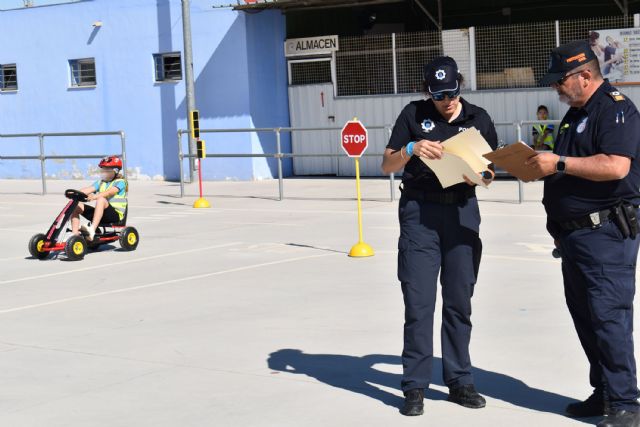Una clausura que ha contado con la participación de todos los cursos de 4° de Primaria, alumnado ha realizado prácticas con los karts de pedales del departamento de educación vial de la Policía Local en la pista de tráfico municipal, que cuenta con señales de tráfico y semáforos.
