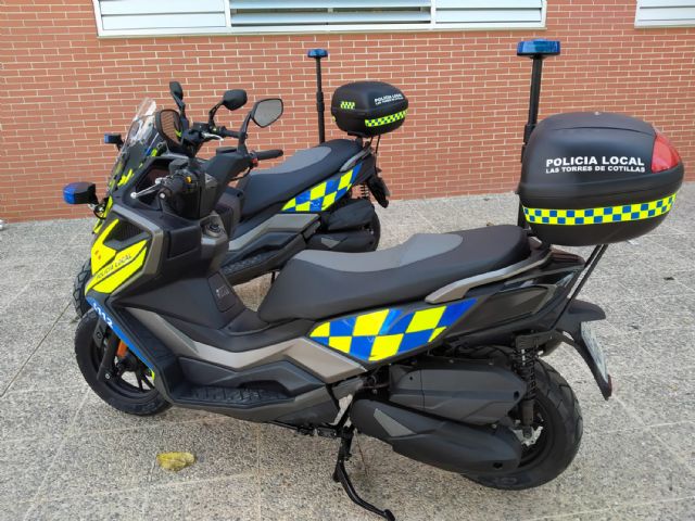 La Policía Local de Las Torres de Cotillas ya cuenta con dos nuevas motocicletas para su servicio, vehículos adquiridos por la Concejalía de Seguridad Ciudadana por un valor de 15.200 euros. Se trata de dos vehículos tipo scooter de 350 CC, debidamente rotuladas y equipadas para el servicio diario, que mejorarán la capacidad de respuesta y movilidad de los agentes.