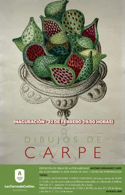 Las Concejalías de Cultura y de Educación de Las Torres de Cotillas inaugurarán mañana sábado 22 de febrero (19:00 horas) en el Centro de Interpretación municipal (plaza Adolfo Suarez, s/n) la exposición "Dibujos de Carpe". Se trata de una colección de los mejores dibujos e ilustraciones del magnífico artista murciano Antonio Hernández Carpe (Espinardo, 1923 Madrid, 1977), en una iniciativa donde colabora la fundación "El Mural de Hernández Carpe"