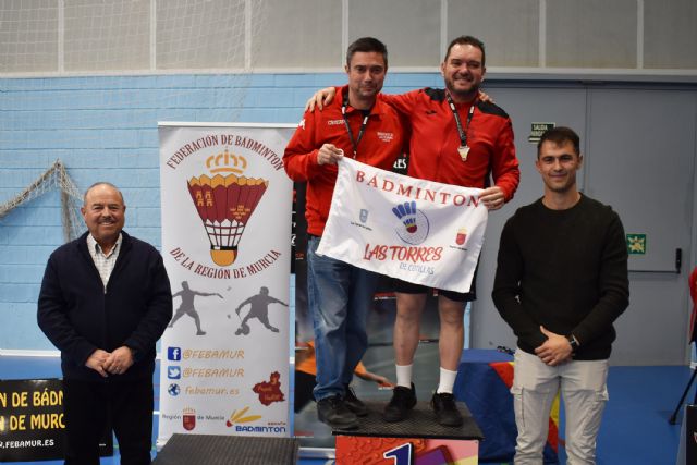 12 de las 24 medallas en disputa, en total 6 oros y 6 platas. Ese es el espectacular bagaje del Bádminton Las Torres en el campeonato autonómico senior de bádminton, en el que participaron todos los clubes murcianos. Un torneo organizado por la Federación de Bádminton de la Región de Murcia el pasado sábado 22 de marzo en el pabellón Mireia Belmonte de Las Torres de Cotillas.