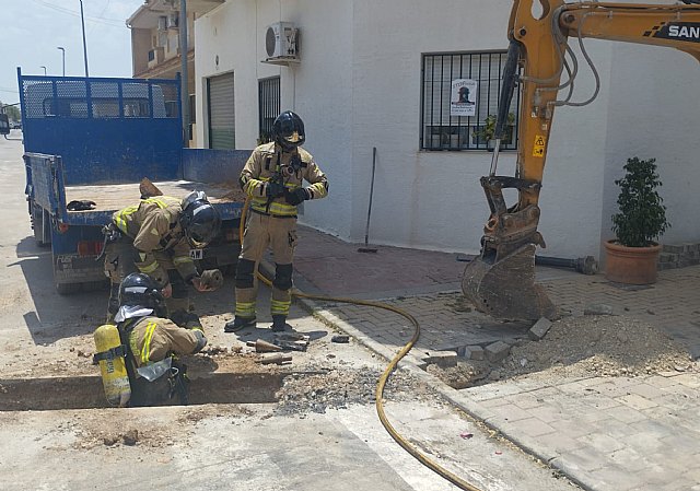 El incidente se produjo en la Calle Enrique Granados, en Las Torres de Cotillas, cuando una empresa constructora que realizaba trabajos en la zona perforó accidentalmente una tubería de abastecimiento de gas, provocando la fuga.