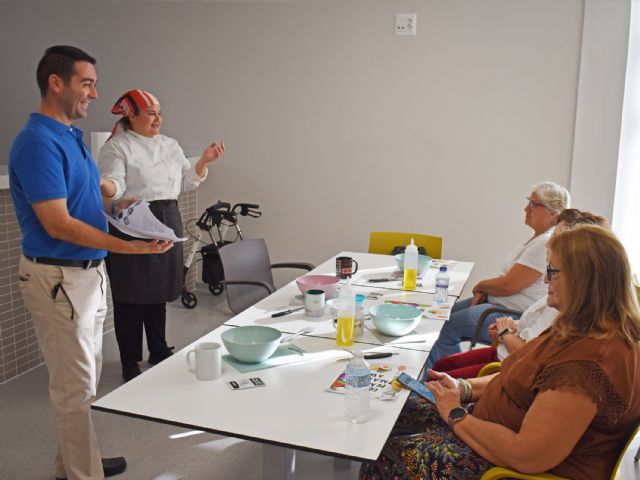 "Es importante ofrecer propuestas inclusivas que favorezcan el bienestar de nuestros mayores y, al mismo tiempo, contribuyan a mantener viva la cultura gastronómica local", informa el alcalde Pedro José Noguera, que dio la bienvenida a los participantes del taller junto a su concejala María Dolores Sánchez.