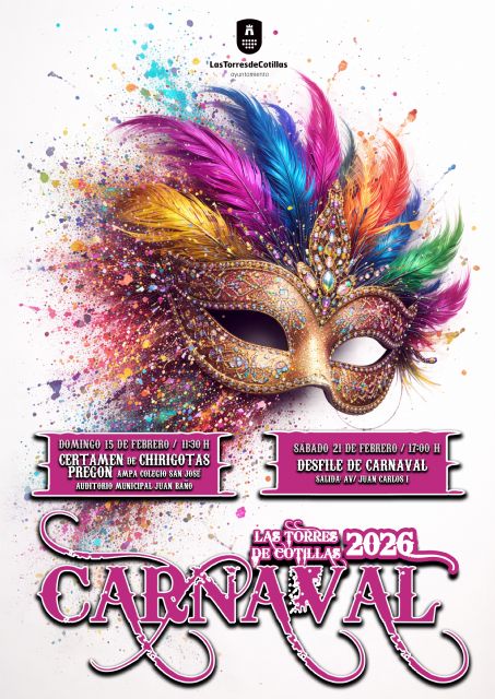Las Torres de Cotillas volverá a llenarse de música, disfraces y alegría con la celebración del Carnaval 2026, una cita muy esperada en el calendario festivo local que combinará tradición, humor y participación ciudadana con propuestas para todas las edades.
