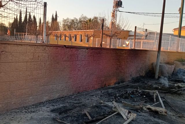 "El fuego también causó desperfectos en el entorno, con parte del muro afectado por las llamas y la caída de dos tramos de la valla de hierro de la zona", señala el concejal de Recogida de Residuos y Limpieza Viaria, Francisco Juan Giménez, que explica que también se han quemado otros dos contenedores frente a Conservas La Loma.